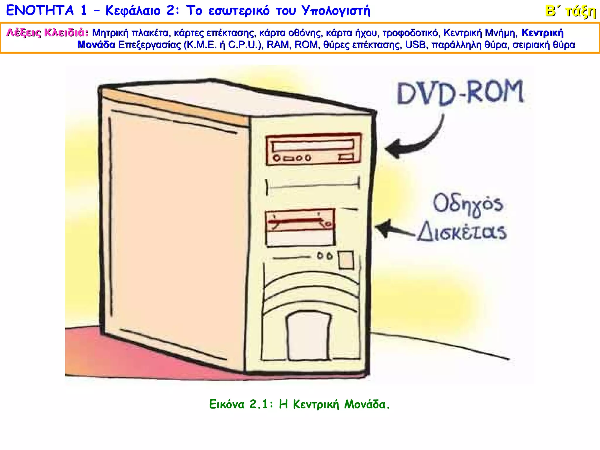 ΕΝΟΤΗΤΑ 1 –Κεφάλαιο 2: Το εσωτερικό του Υπολογιστή Β΄ τάξη