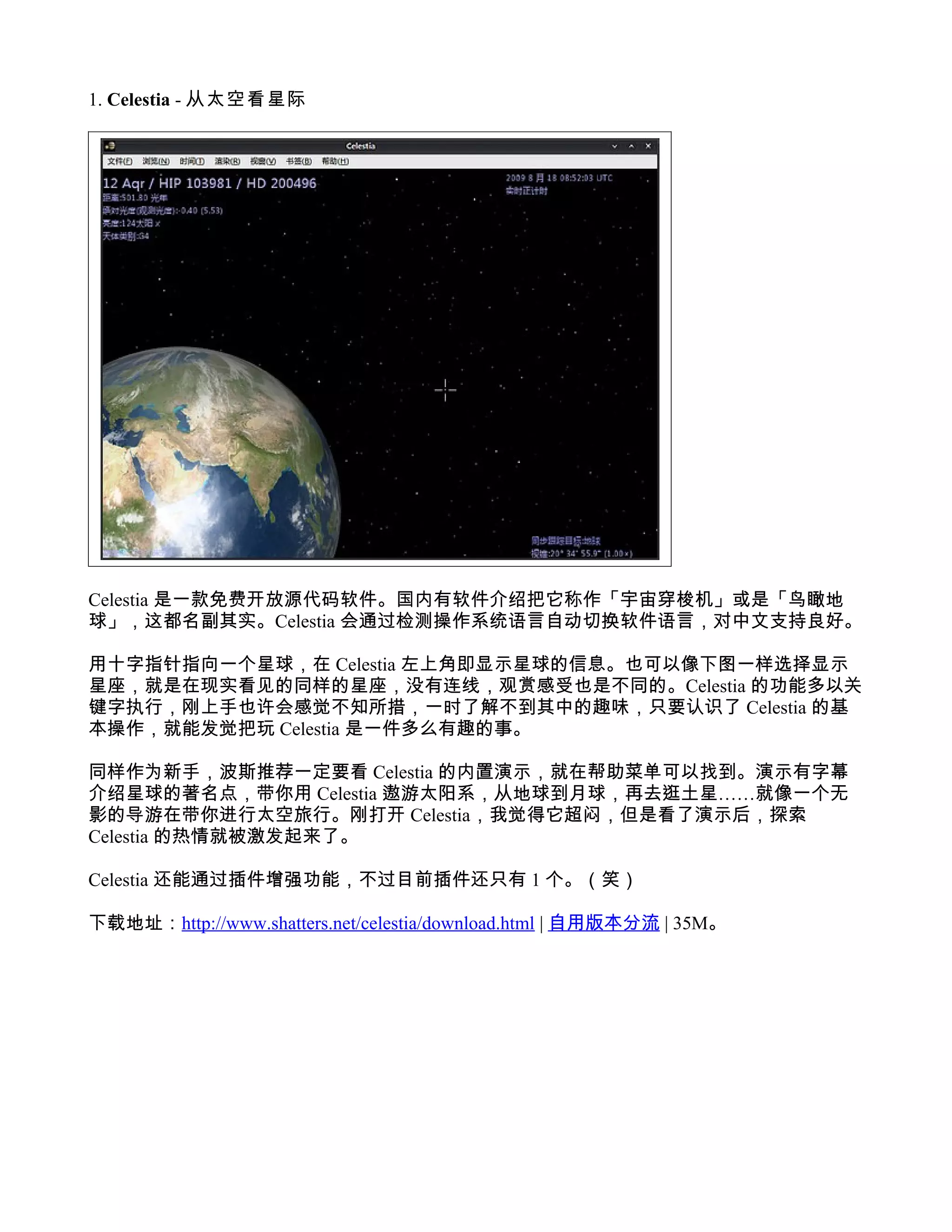 下载地址:http://www.shatters.net/celestia/download.html | 自用版本分流 | 35M。