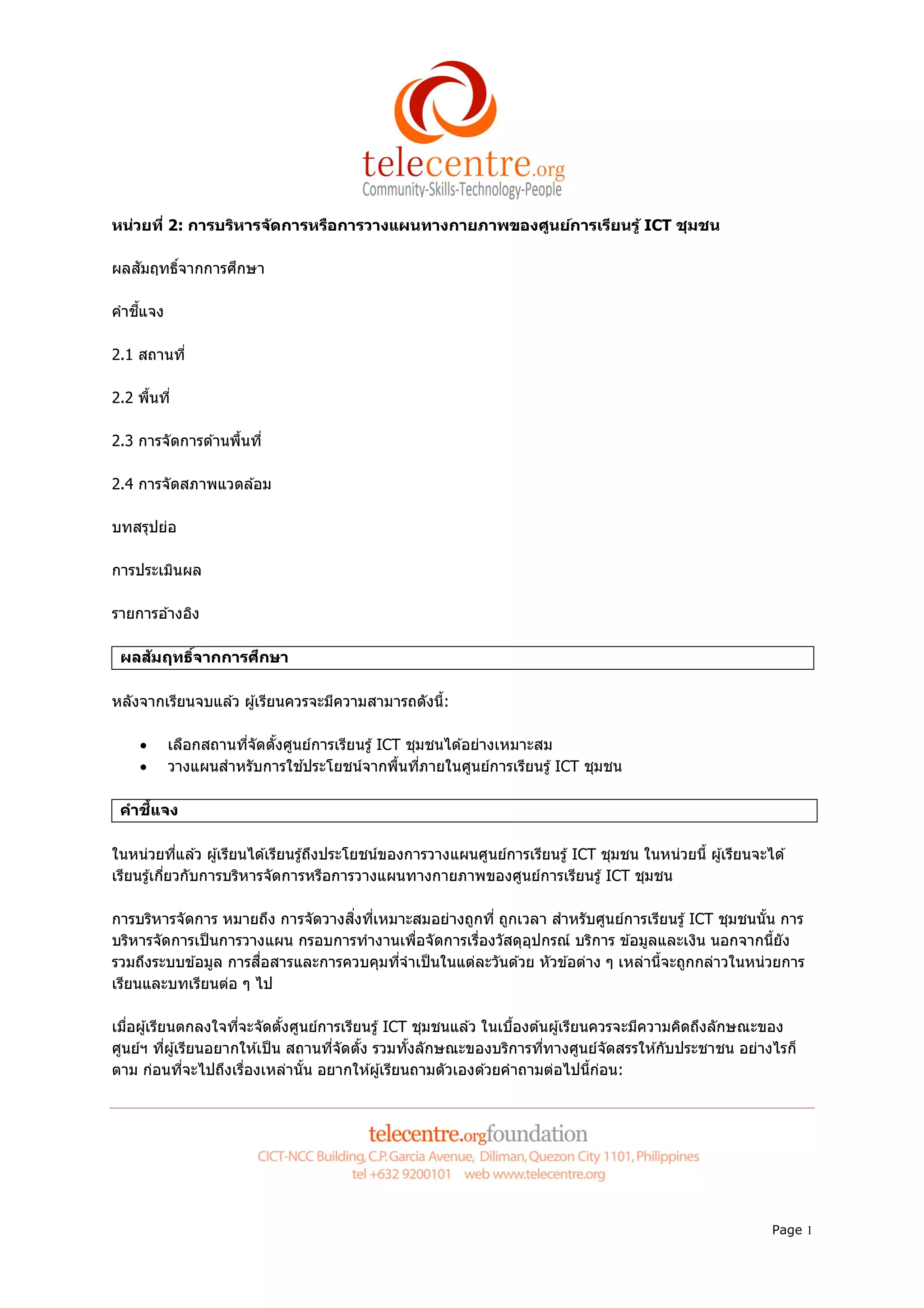 หลักสูตรที่ 2 หน่วยที่ 2: การบริหารจัดการหรือการวางแผนทางกายภาพของศูนย์การเรียนรู้ ICT ชุมชน