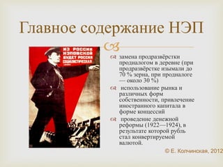 Документ освещает вопросы экономики СССР, включая взгляды большевиков на экономические отношения, военный коммунизм, национализацию и НЭП. Рассматриваются недостатки советской экономической системы и проблемы, такие как последствия дефицита и невозможность инновационного предпринимательства. Также анализируются особенности модели импортозамещающей индустриализации и ее влияние на состояние экономики в конце советского периода.