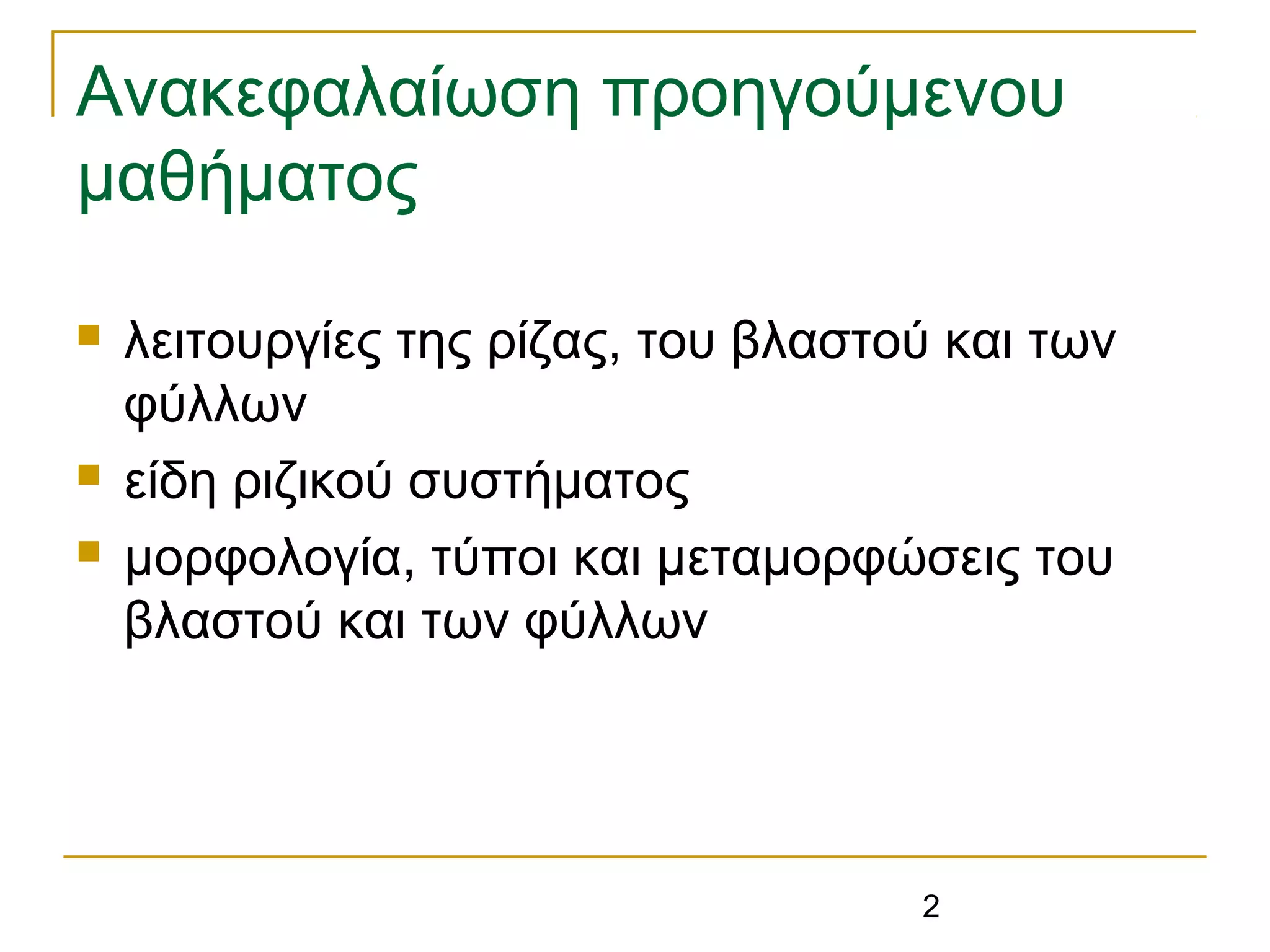 βλαστοφόροι ή φυλλοφόροι → φύλλα και βλαστοί