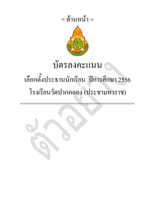 บัตรลงคะแนน เลือกตั้งประธานนักเรียน ปีการศึกษา 2556 โรงเรียนวัดปากคลอง