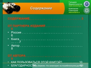 Документ представляет собой авторизованный справочник, посвященный крупнейшим потребительским рынкам России с 2001 по 2009 годы, в котором анализируются объемы, динамика и перспективы. В нем содержатся краткие обзоры 15 ключевых сегментов рынка, а также прогнозы его развития с поддержкой более 200 диаграмм. Также подчеркивается, что документ полезен для специалистов в области маркетинга и оценка его стоимости объясняется сравнением с рыночными отчетами.