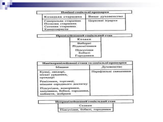 українські поселенці ділилися на козаків, духовенство, міщан і селян