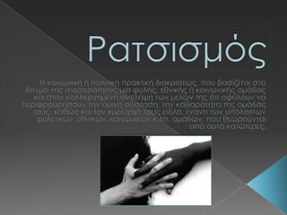 Ένα άτομο που έχει υποστεί ρατσιστική συμπεριφορά από άλλους νιώθει κατώτερο με αποτέλεσμα να κλείνεται στον