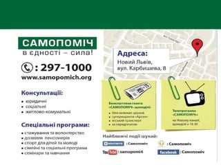 • Консультаційний центр на базі ГО «САМОПОМІЧ»: