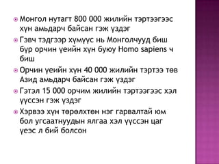 Монголын нийгмийн түүхэн нийтлэгүүдийн үүсэл, хувьсал, нийгмийн бүтэц давхраа... PPTX