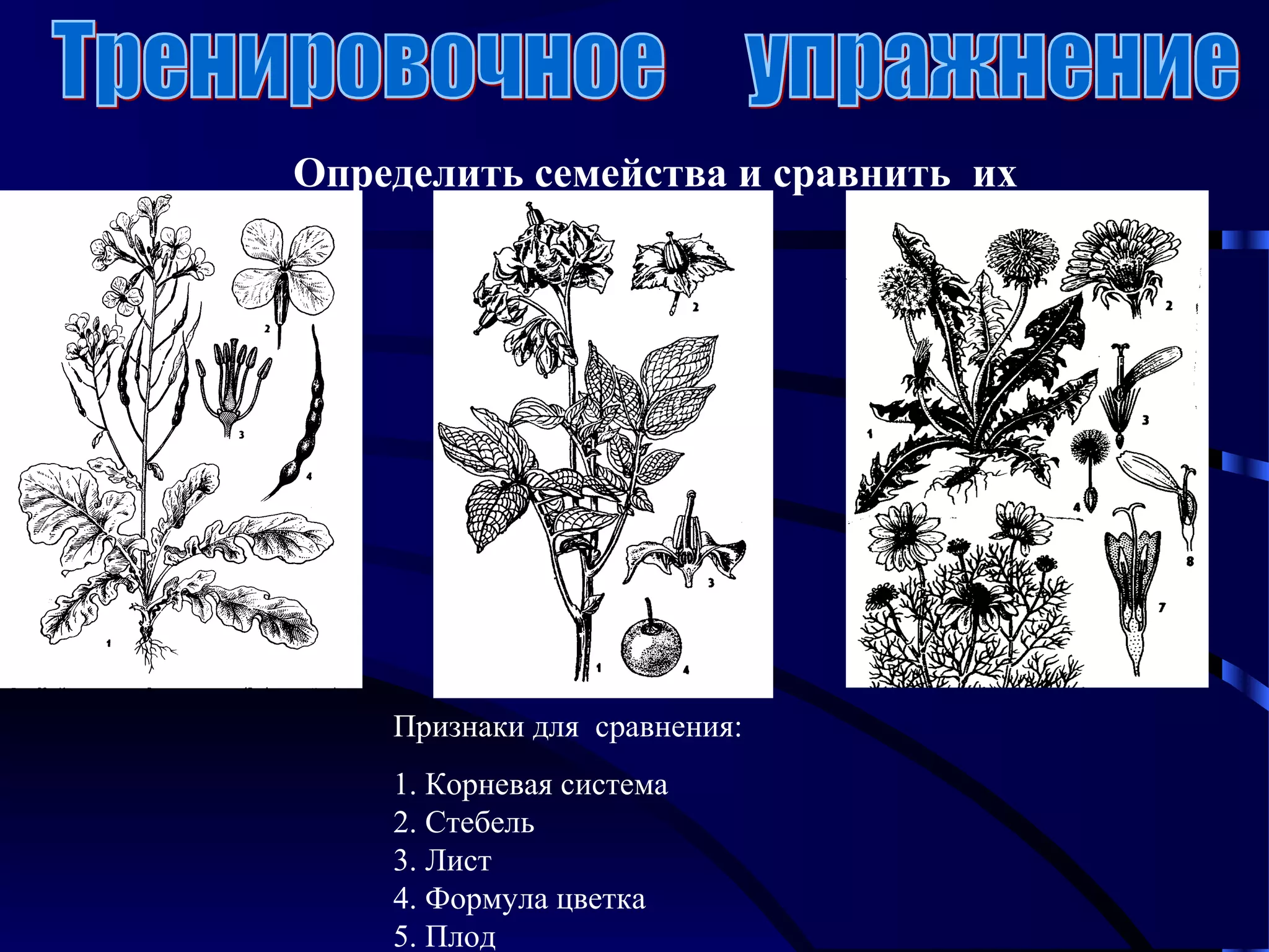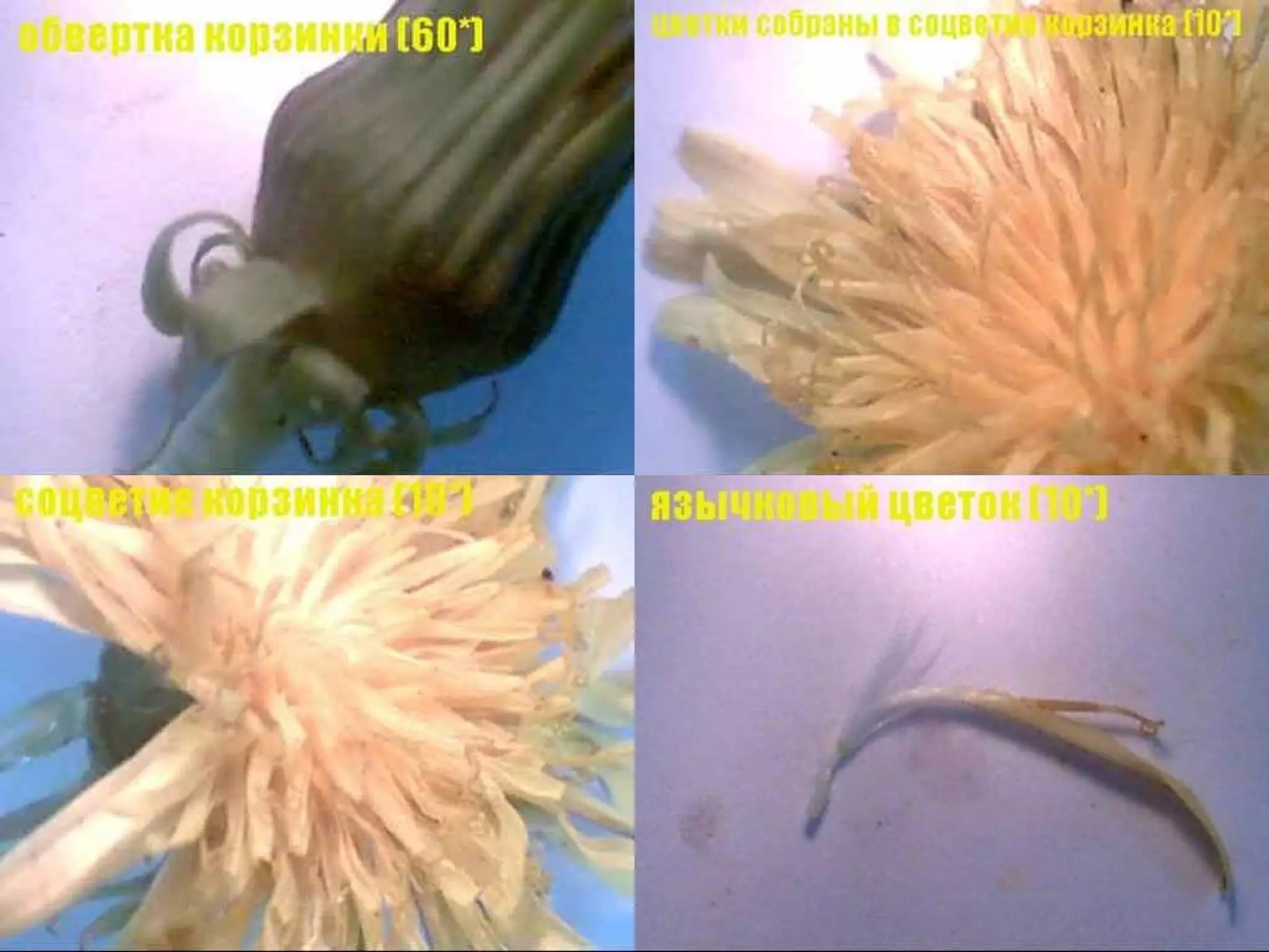 Документ описывает семью сложных цветковых растений, выделяя их общие признаки, такие как строение корневой системы, стебля и цветков. Особое внимание уделяется строению соцветий и цветков одуванчика, включая различные типы цветков и структуру плодов, которые позволят семенам распространяться. Лабораторная работа включает инструкции по исследованию и сравнению этих особенностей.
