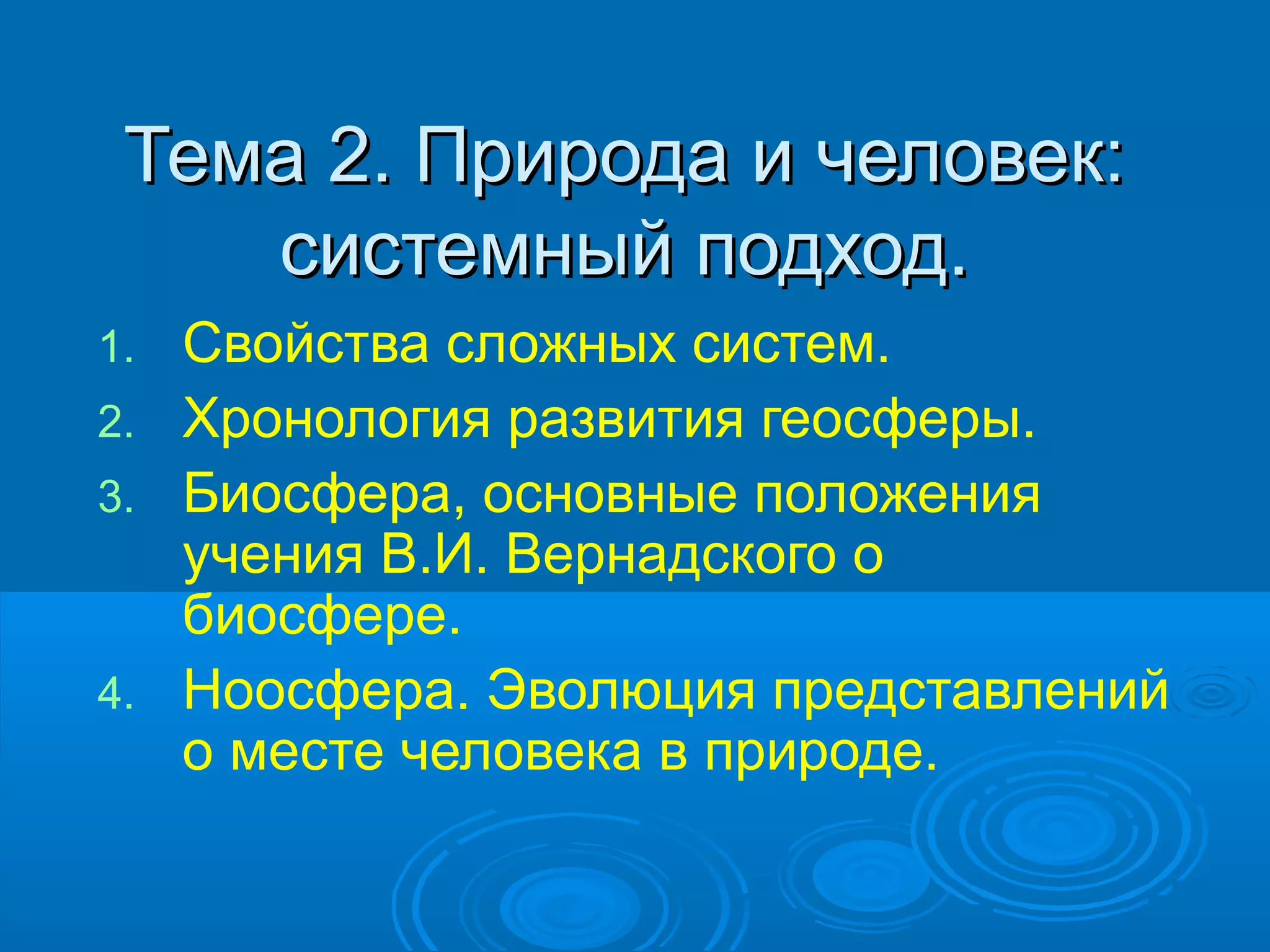 Документ рассматривает взаимодействие природы и человека через системный подход, выделяя свойства сложных систем, такие как биосфера и ноосфера. Описывается эволюция учения о биосфере, включая вклад таких учёных, как В.И. Вернадский, и рассматривается влияние человека на биосферу и планету в целом. Ноосфера определяется как современная стадия развития биосферы, в которой деятельность человека становится ключевым фактором.
