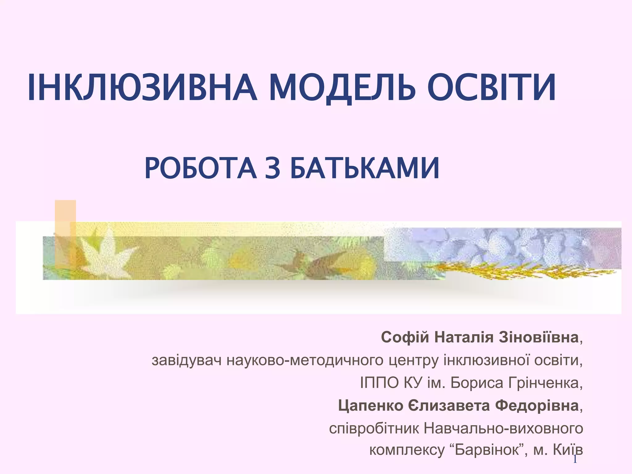 Н.З.Софій, Є.Ф.Цапенко. Інклюзивна модель освіти. Робота з батьками