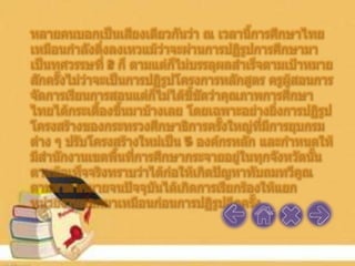 The document discusses Thailand's ranking in the World Economic Forum's Global Competitiveness Report for 2012-2013. It mentions Thailand's ranking in higher education and training, technological readiness, market size, and business sophistication. It also discusses labor issues and education reform efforts regarding the social contract between educational institutions and society.