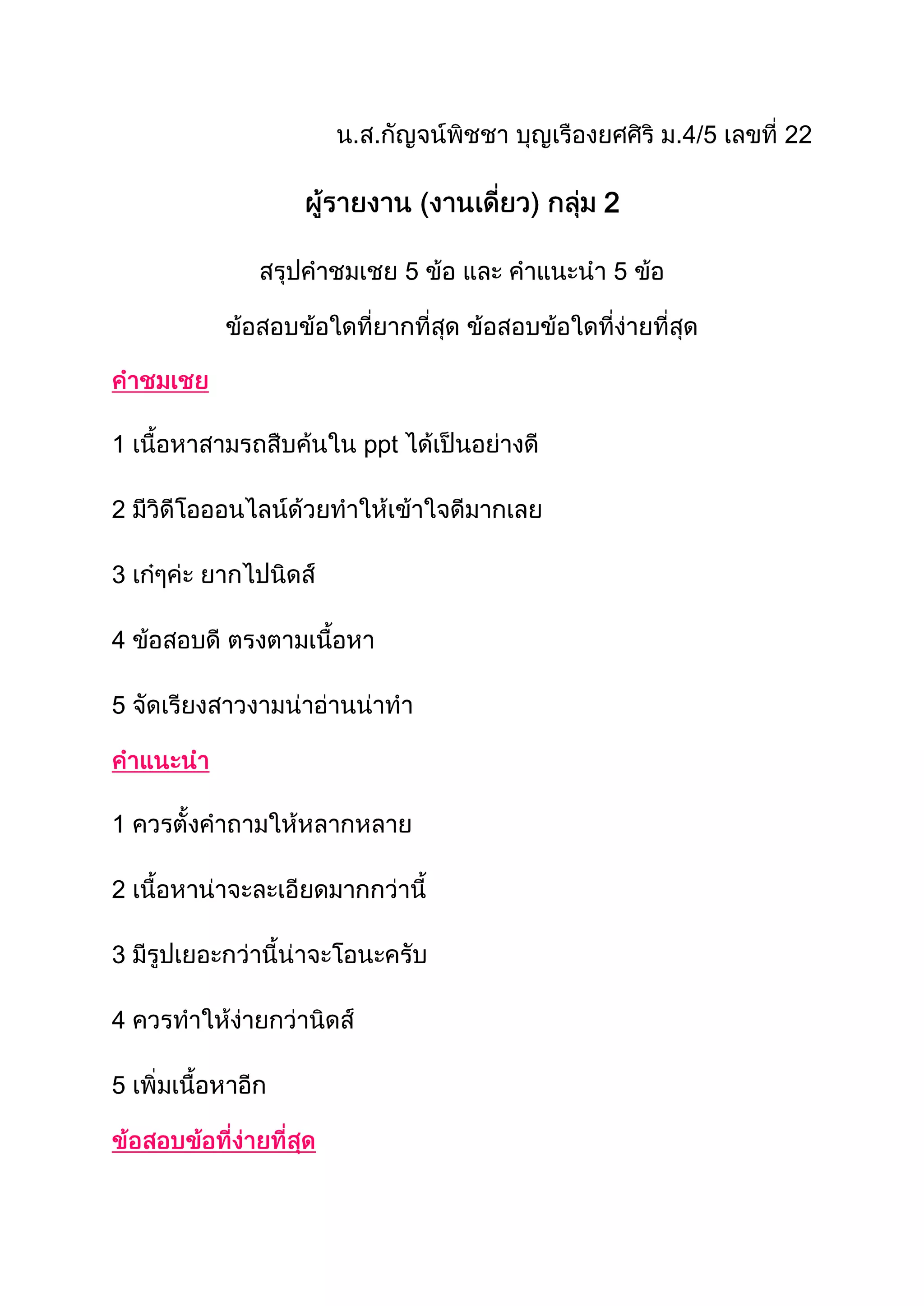 สรุปคำแนะนำ กลุ่ม 2 ม.4/5 เลขที่ 27 DOCX