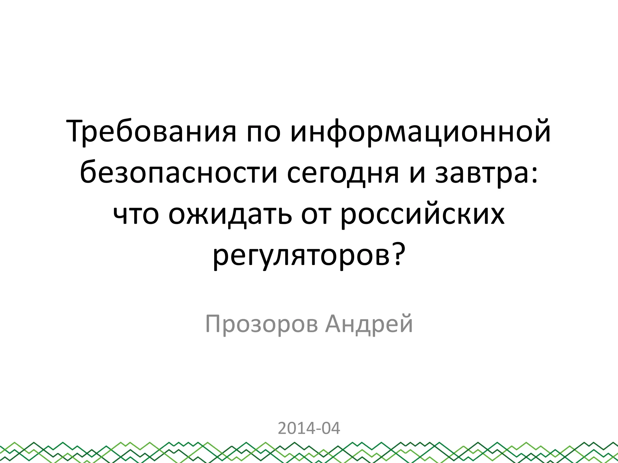 Документ обобщает требования по информационной безопасности в России, упоминая законы и правила, действующие на сегодняшний день, а также предстоящие изменения. Основное внимание уделяется защите персональных данных и нововведениям в законодательстве, касающимся финансового контроля и кибербезопасности. Обсуждаются также актуальные проблемы, связанные с обновлением нормативных актов и ролью различных государственных регуляторов.
