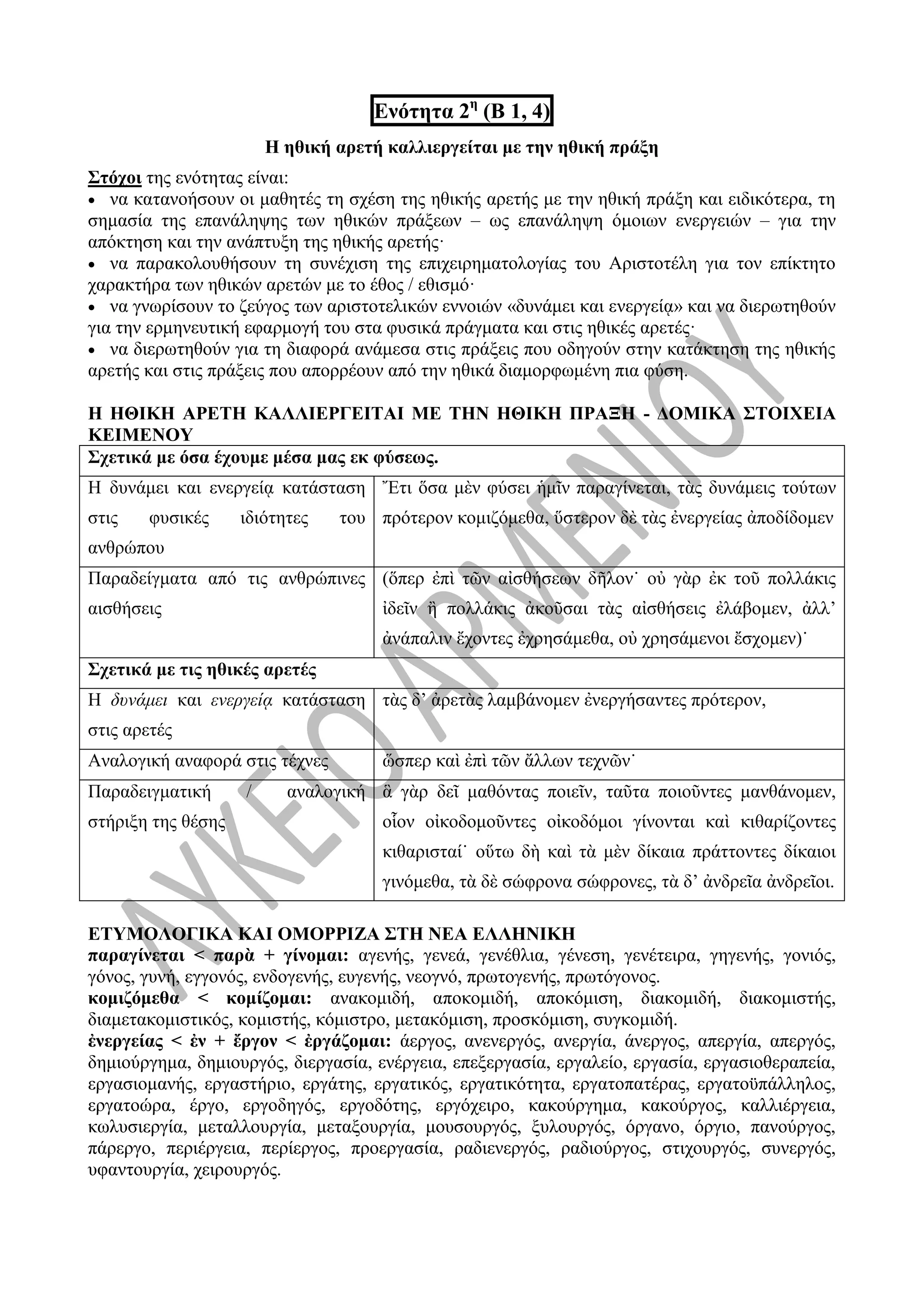 Η ΗΘΙΚΗ ΑΡΕΤΗ ΚΑΛΛΙΕΡΓΕΙΤΑΙ ΜΕ ΤΗΝ ΗΘΙΚΗ ΠΡΑΞΗ - ΔΟΜΙΚΑ ΣΤΟΙΧΕΙΑ