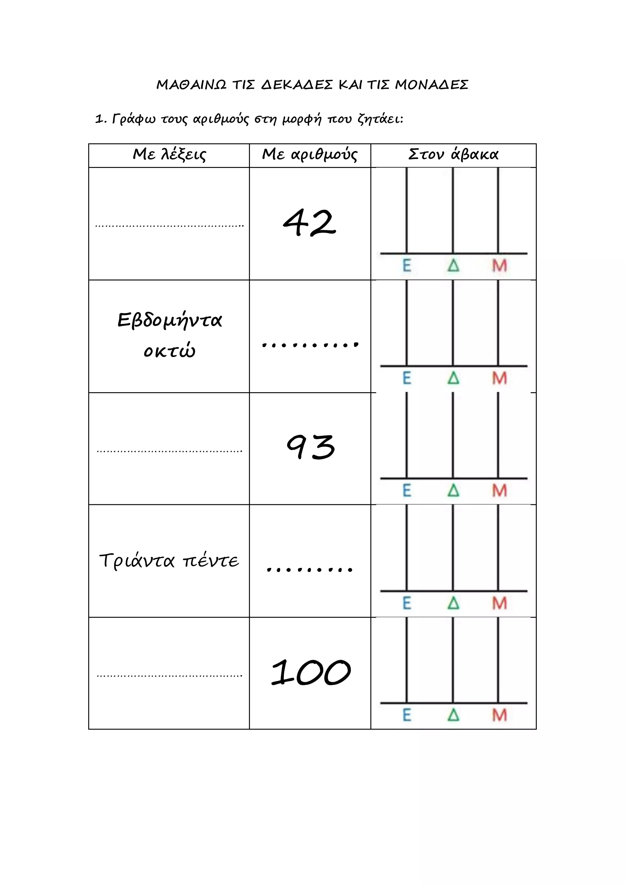 Με λέξεις Με αριθμούς Στον άβακα