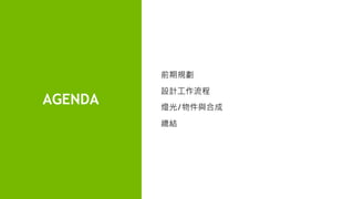 本文件介绍了使用数字特效技术创建写实近代台湾街景的过程,特别是在电影《楼下的房客》中的应用。重点内容包括前期规划、设计工作流程和灯光合成等技术细节,以及虚拟场景配置和人群模拟的具体方法。文档还提供了制作过程中的数据统计和技术规范,以确保制作质量和真实度。