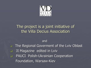 Project partners: Regional Government of Lviv Oblast, Ji Magazine Lviv, PAUCI Foundation Warsaw-Kiev
