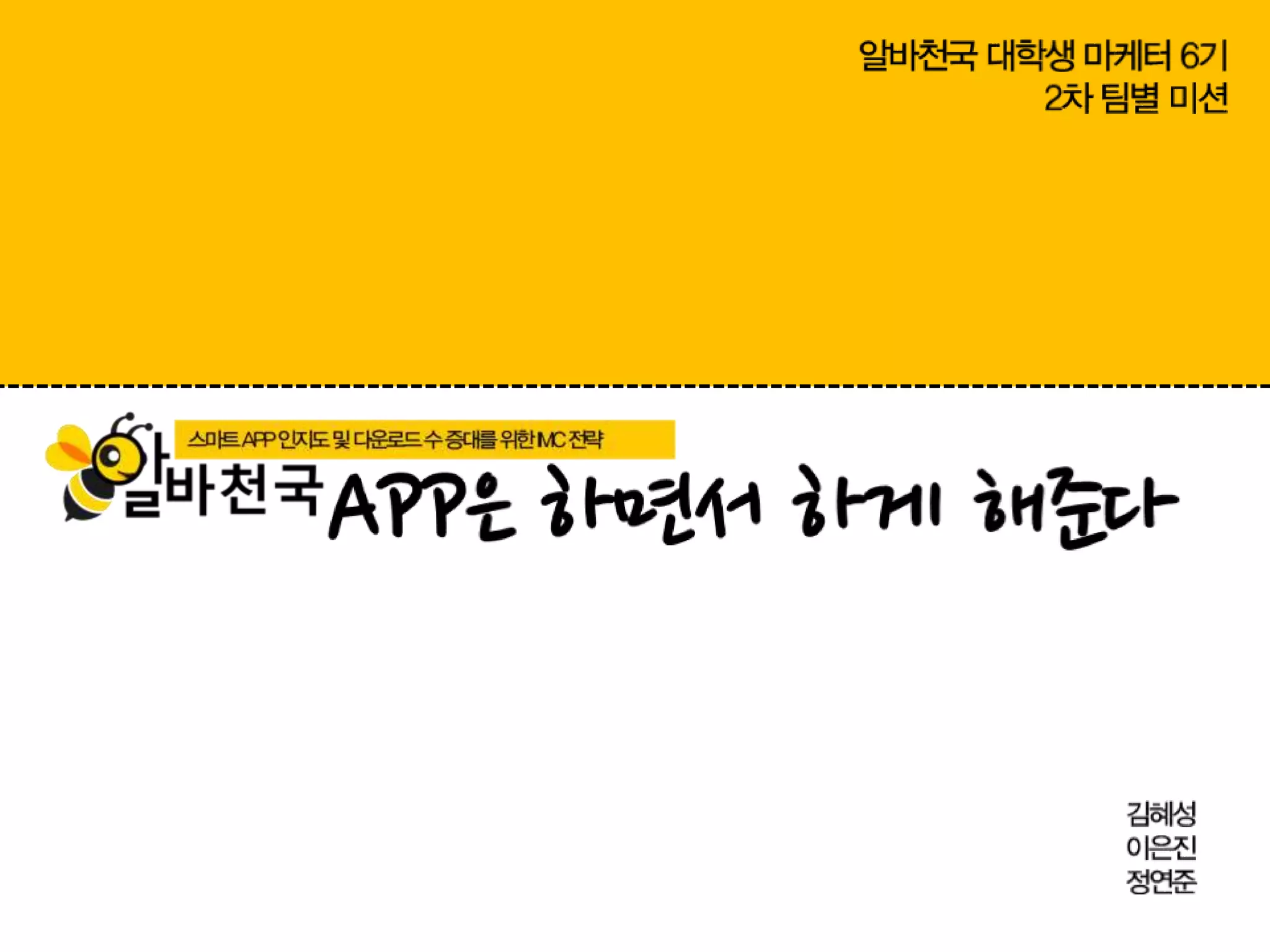 #10 알바천국 앱의 유용성을 깨닫지 못하고 있는 이들(프로모션 타겟)에게 알바천국 앱의 유용함을 깨닫게해주는 것은 인지도 향상과 다운로드 수 증가를 가져올 것이다. 그래서 우리는 앱을 단지 알리고 다운로드를 촉진하는 것에서 더 전으로 나아가 앱의 유용성을 알리는 것을 컨셉으로한 프로모션을 진행하고자 한다.