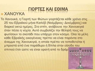 μήνες μετά γιορτάζεται η Χανουκά. Κατά τον