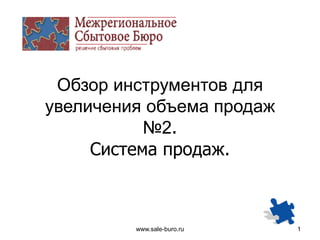 Документ рассматривает инструменты и стратегии для повышения объема продаж в компаниях, включая управление процессами, стандартизированные технологии и оценку эффективности менеджеров. Он затрагивает деятельность по привлечению новых клиентов, работе с действующими и реактивации потерянных клиентов. Также в документе упоминаются важные аспекты, такие как планирование работы менеджеров и стандарты качества их деятельности.