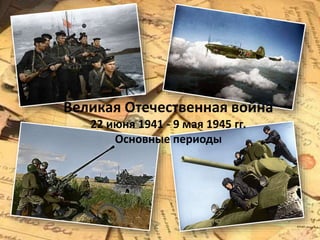 Документ представляет собой подробный обзор Великой Отечественной войны с 22 июня 1941 года по 9 мая 1945 года, освещая ключевые события и военные операции, такие как оборона Брестской крепости, битва за Москву и Сталинград, а также последствия для страны и ее населения. В документе подчеркиваются значительные потери и героизм советских войск, а также низкая смертность и ценности, которые они защищали. Завершение войны отмечено капитуляцией Германии и значением памяти о fallen солдатах.