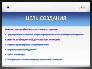 Документ описывает несколько проектов, направленных на развитие компетенций студентов через создание молодежного центра и активные формы обучения. Основные цели включают выявление лидеров, создание структуры центра, реализацию мероприятий и улучшение качества подготовки по информатике. Проекты также фокусируются на взаимодействии с предприятиями для курсового и дипломного проектирования.
