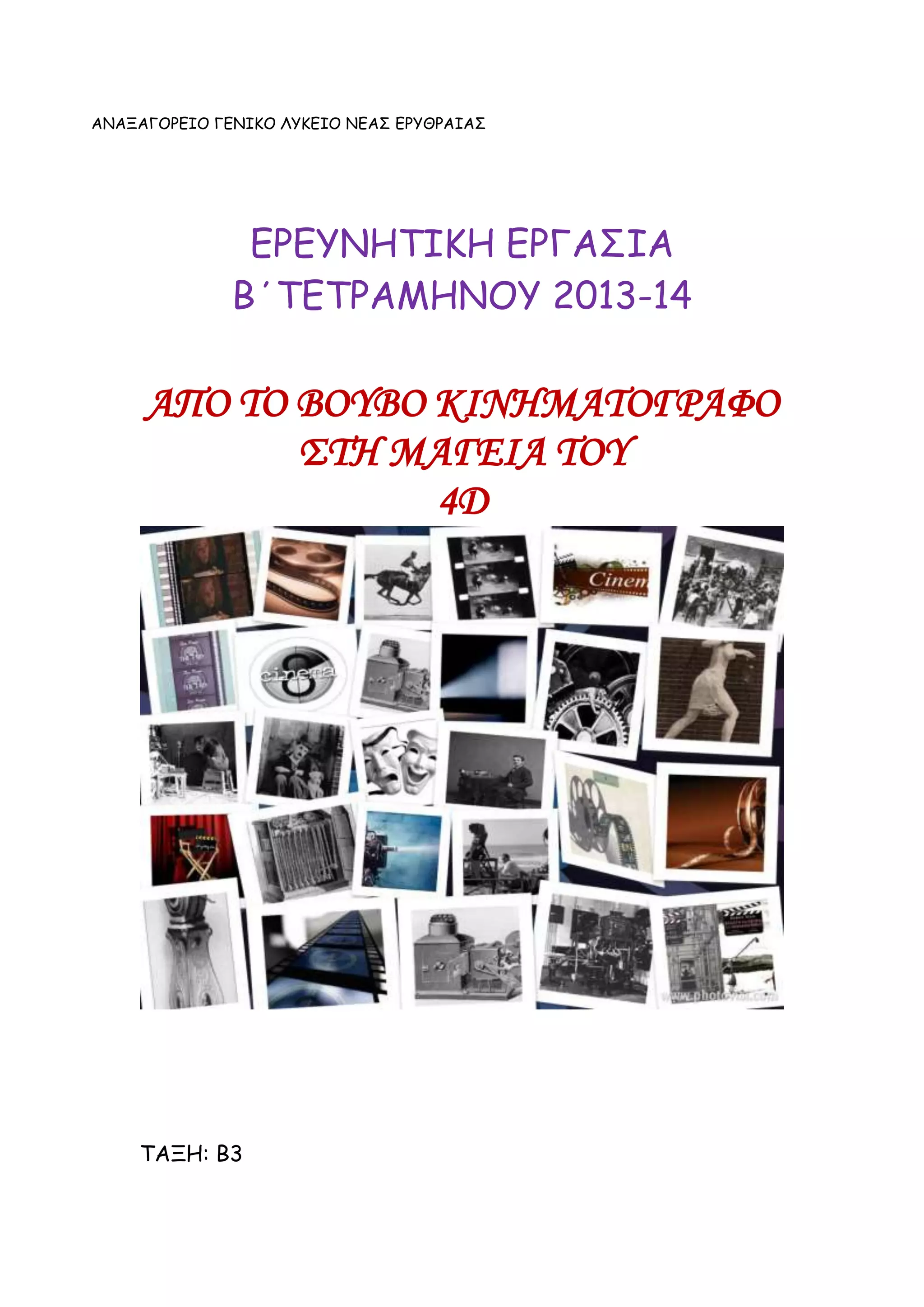 ΘΕΜΑ: “ Από το βουβό κινηματογράφο στη μαγεία του 4D”