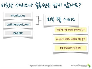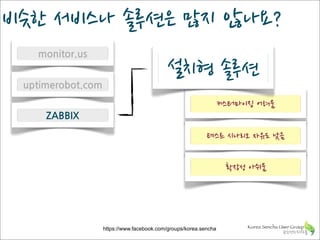 CasperJS is a headless browser solution for automating monitoring built with JavaScript and PhantomJS. It allows periodically monitoring web servers to ensure they are functioning properly and prevent issues like outages from negatively impacting customers. Other similar services include monitor.us, uptimerobot.com, and Zabbix. Self-hosted solutions may require more customization.