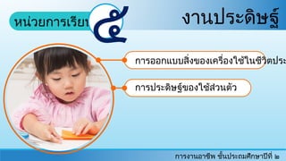การประดิษฐ์ของใช้ส่วนตัว การออกแบบสิ่งของเครื่องใช้ในชีวิตประ งานประดิษฐ์ การงานอาชีพ ชั้นประถมศึกษาปีที่ ๒ หน่วยการเรียนรู้ที่ ๕