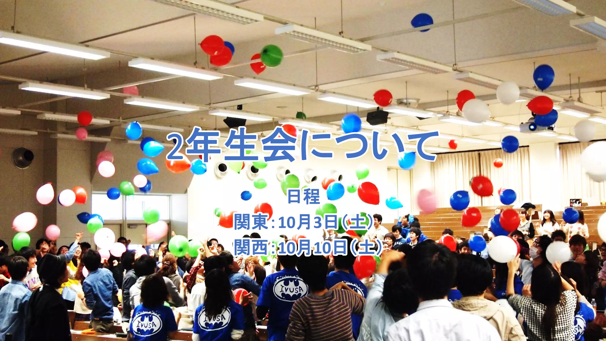 2年生会について 日程 関東:10月3日(土) 関西:10月10日(土)
