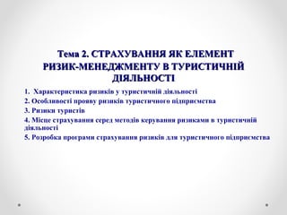 2. Особливості проявуризиків туристичного2. Особливості прояву ризиків туристичного