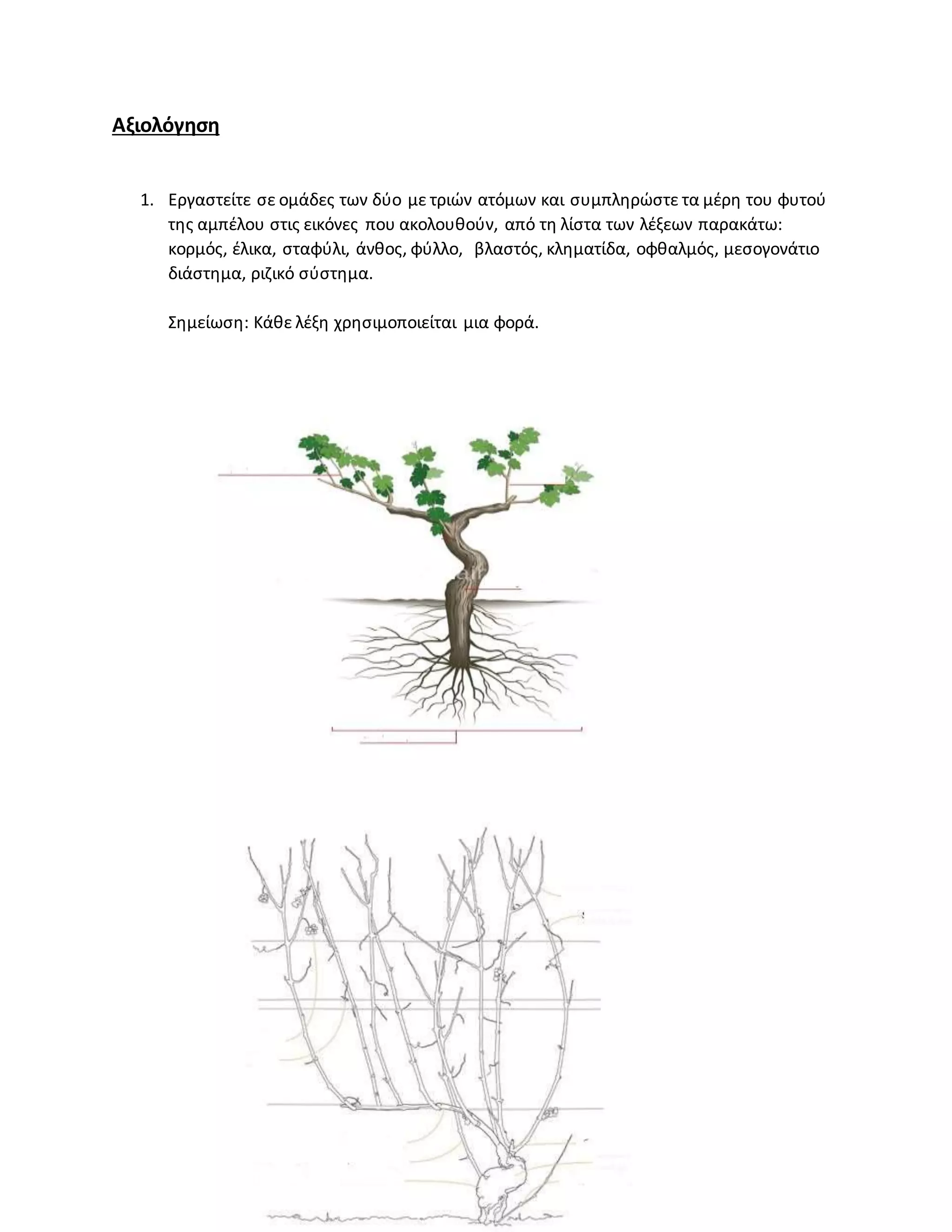 1. Εργαστείτε σεομάδες των δύο με τριών ατόμων και συμπληρώστε τα μέρη του φυτού