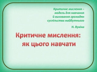 тощо. Мислення стає критичним, тільки якщо носить індивідуальний характер.