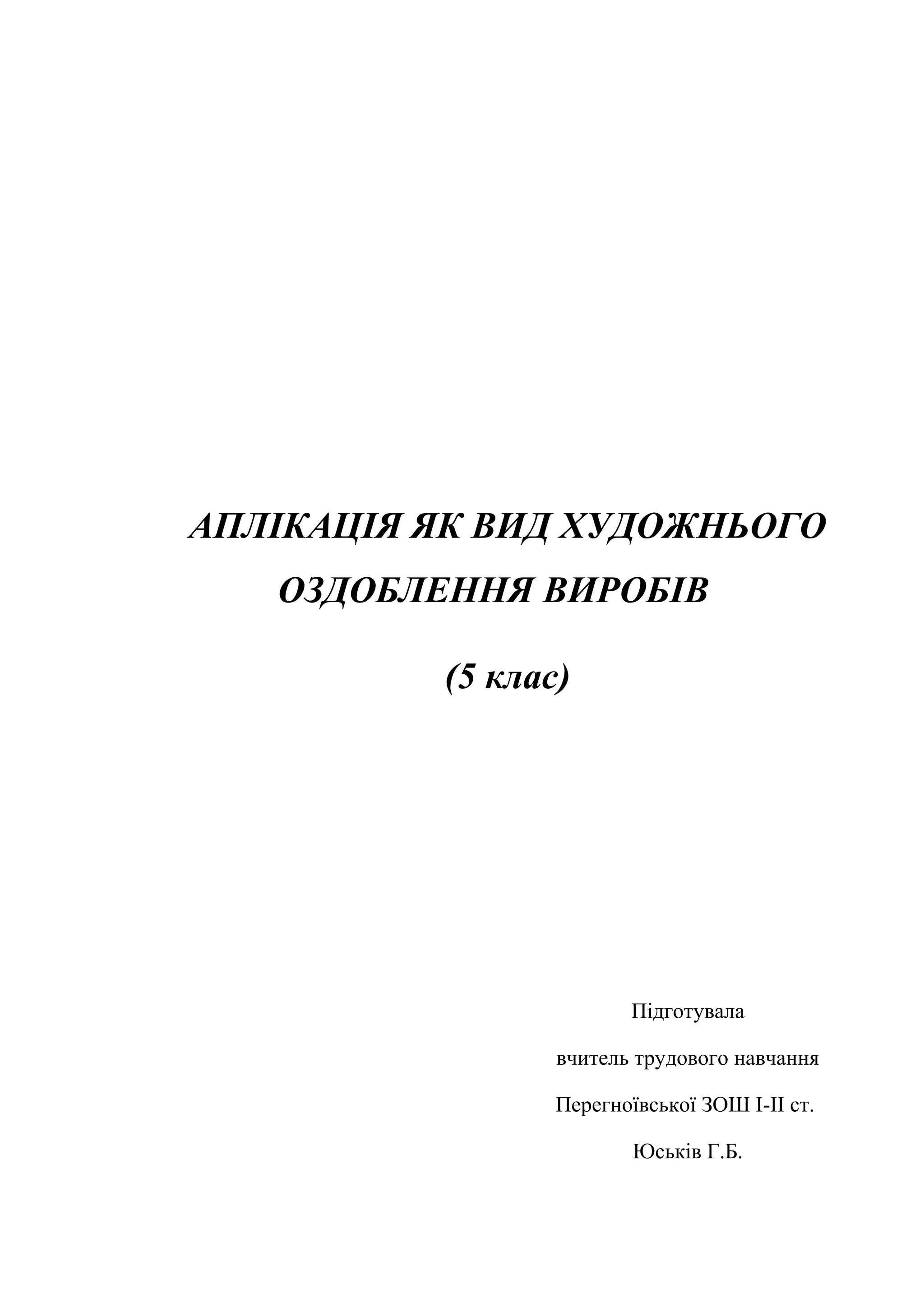 Тема. АПЛІКАЦІЯ ЯКВИД ХУДОЖНЬОГО ОЗДОБЛЕННЯ