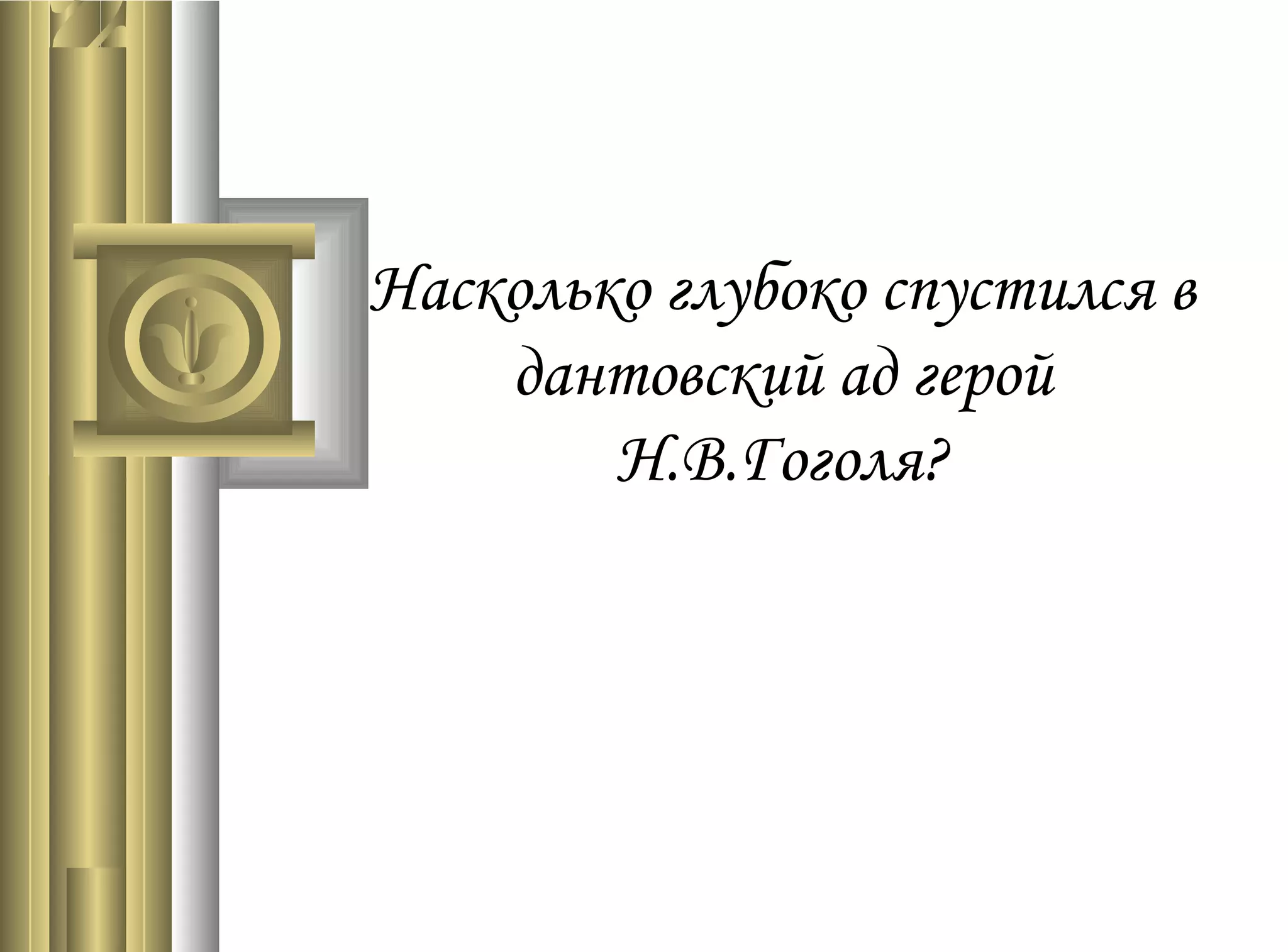 Документ исследует аналогии между поэмами Н.В. Гоголя «Мертвые души» и Данте Алигьери «Божественная комедия», акцентируя внимание на характеристиках помещиков и их соответствия кругам ада Данте. Основная цель исследования заключается в анализе моральных пороков персонажей и их загробной участи, а также в сопоставлении их образов с дантовскими концепциями ада. В результате анализа выявляется, что Гоголь изображает свои героев как мертвых душ, находящихся в различных состояниях нравственной запущенности, и задается вопросом о возможности их спасения.