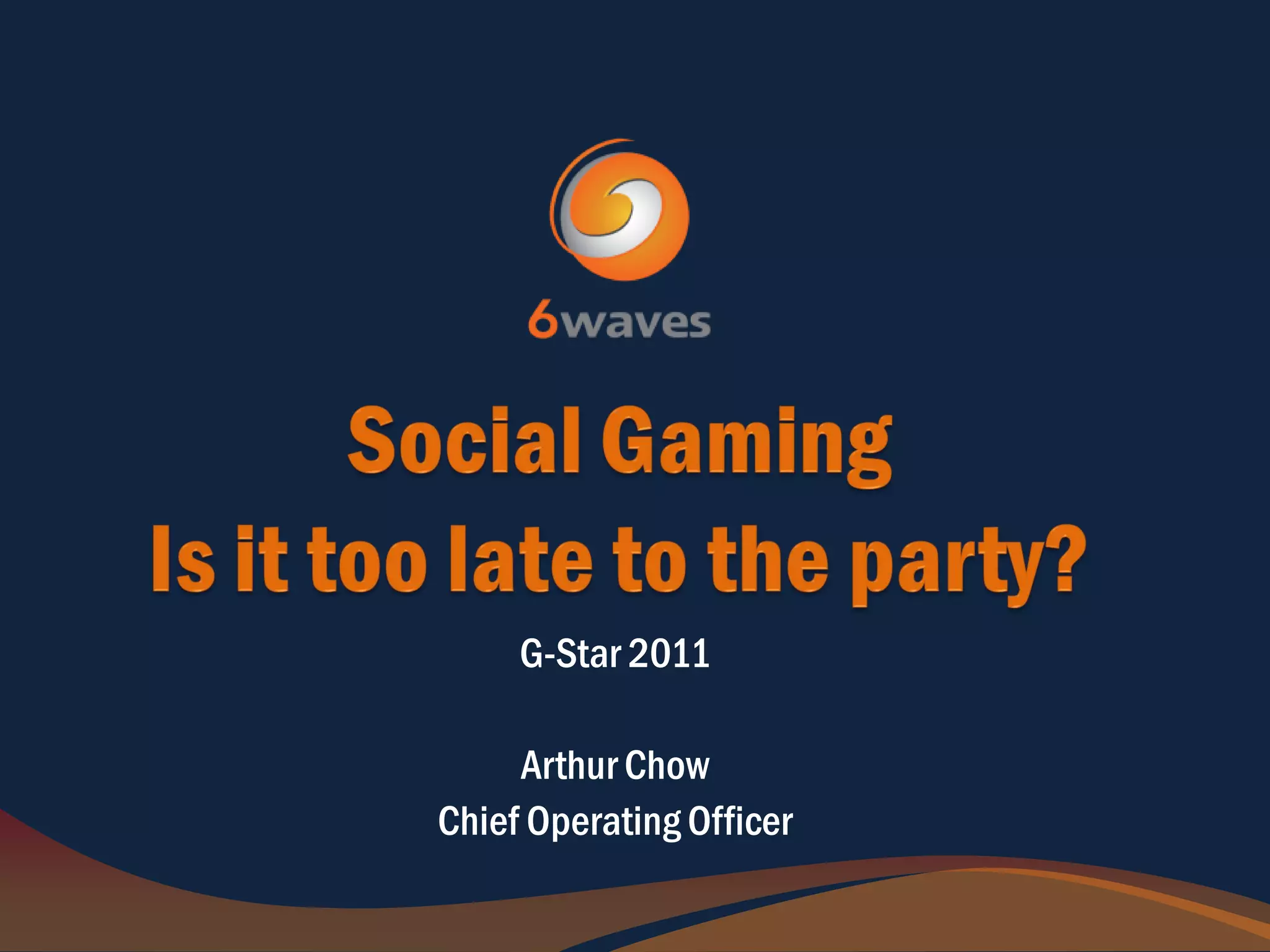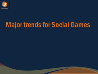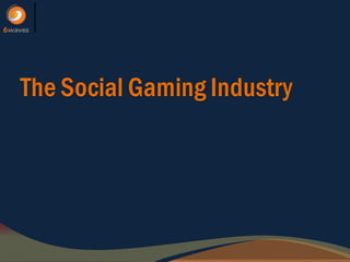 The document summarizes major trends in the social gaming market and 6waves' role as a social gaming publisher. Key points include: (1) the social gaming market is still growing rapidly driven by better monetization, established brands entering the space, and increased competition from startups; (2) 6waves has had success publishing numerous hits that have reached millions of users globally; (3) 6waves' developer fund aims to support independent developers in the social gaming market.