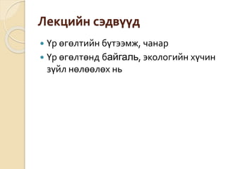 Үр өгөлтөнд байгаль,экологийн