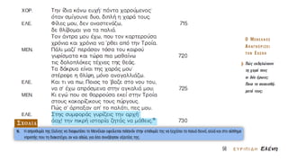 το Μενέλαο και συμπάσχει στην ευτυχία ή τη λύπη του. Διατυπώνει με ελευθερία τις