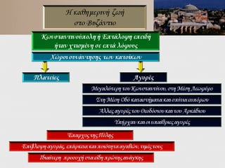 Οι Βυζαντινοί συναντιόντουσαν στις πλατείες και στις αγορές. Η πιο μεγάλη αγορά ήταν η