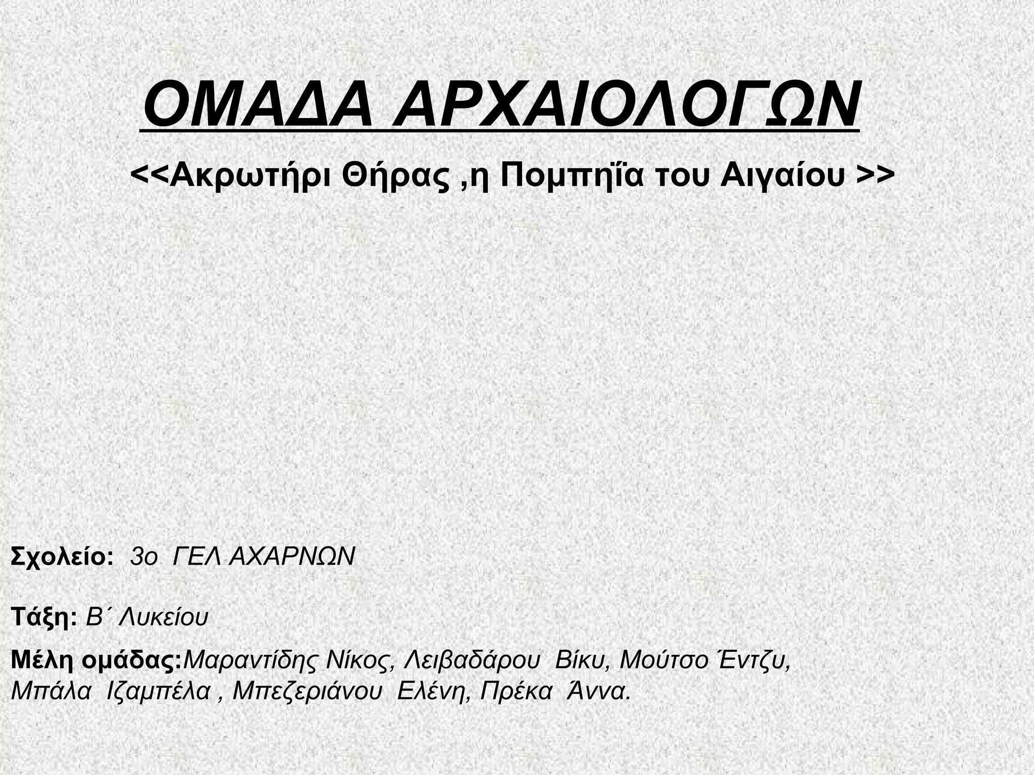 Πομπηΐα του ΑιγαίουΗ τέφρα κάλυψε τα ερείπια του οικισμού διατηρώντας ζωντανές τις εικόνες ενός πολιτισμού που καταστράφηκε από την ηφαιστειακή έκρηξη. Η εξαιρετική τους διατήρηση εντυπωσιάζει σήμερα τον επισκέπτη και δικαίως έδωσε στο Ακρωτήρι την ονομασία <<Πομπηΐα του Αιγαίου>>. Έκρηξη ηφαιστείου Πομπηΐας Έκρηξη ηφαιστείου Σαντορίνης
