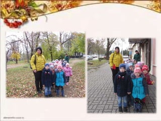Документ описывает экскурсию детей по осеннему парку, подготовленную педагогом Зайцевой А.В. Ребята наблюдали за растительностью, искали сходства и различия между кустарниками и деревьями, а также собирали листья для гербария. Экскурсия была увлекательной, и дети проявляли активный интерес к окружающей природе.