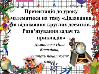 Додавання та віднімання круглих десятків. Розв'язування задач та прикладів. 2 клас