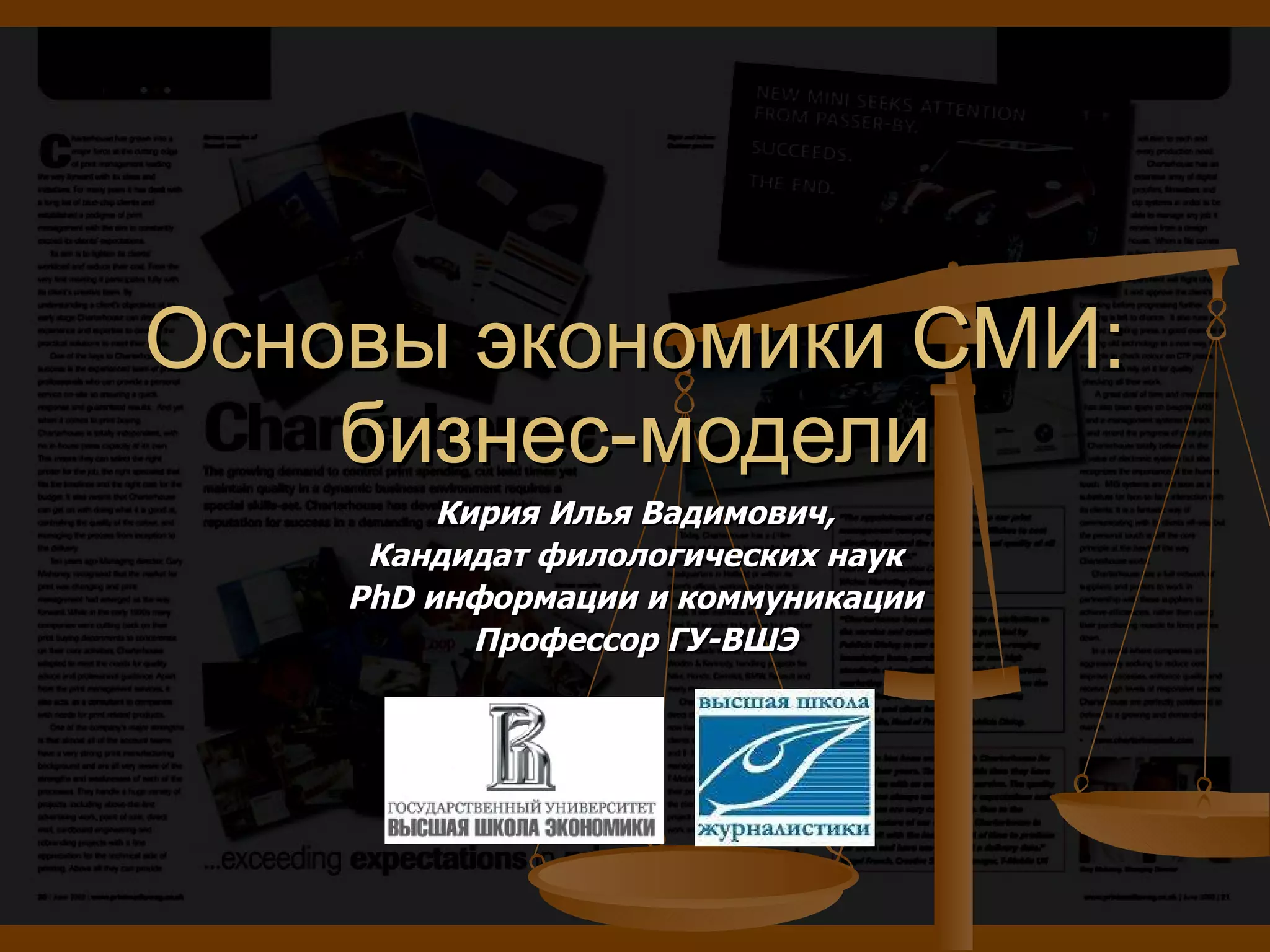 Документ рассматривает основные аспекты экономики СМИ, включая бизнес-модели и различные определения рынка, таких как рынок клиентов, труда и инвестиций. Освещаются ключевые характеристики медиаиндустрии, включая финансирование через рекламу и уникальные связи между рынками. Также затрагиваются изменения в финансировании СМИ и новые подходы, такие как система гонораров и вертикальная интеграция.