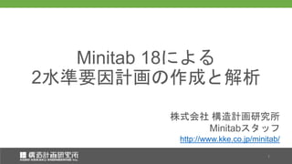 統計解析ソフトMinitab 18を使った2水準要因計画の作成方法を紹介します。また、その実験結果の解析方法や最適な因子の組み合わせを探す方法も紹介します。 Minitab 18の製品情報やセミナー情報はこちら http://www.kke.co.jp/minitab/