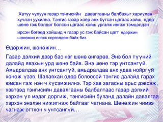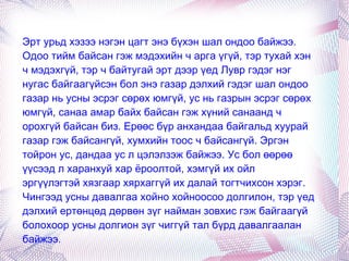 . Зохиолын эхлэлхэсгээс дүрслэх ур маягаар бүтсэн хэсгийг олж тайлбарла. .Эхлэл хэсэгт байгалийн ямар дүрслэл дүрслэгдэж байна вэ ? - 30.