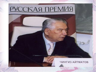 "ДАЛАЙН ХӨВӨӨНИЙ АЛАГХАВ ТОЛГОЙ" Чингиз Торекулович Айтматовын /1928.12.12-2008.06.10/ Далайн хөвөөний алаг хав толгой зохиолыг хүргэж байна. Тэрээр Кыргызстаны утга зохиолын хамгийн том төлөөлөгч юм. - 15.