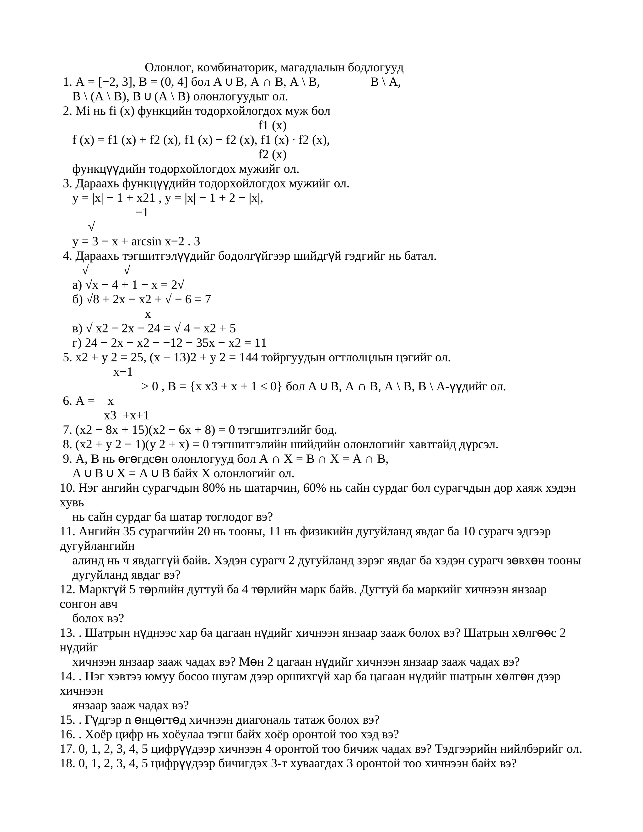 Олонлог, комбинаторик, магадлалынбодлогууд