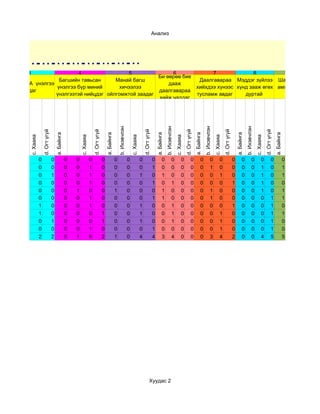 Санамж: Судалгааны хариултыг бөглөхдөө латин цагаан толгойн жижиг үсгээр бичнэ.