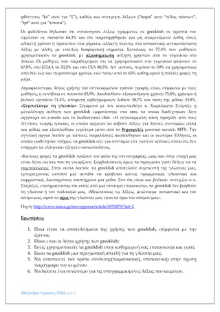 φιλολόγους, έδειξε ότι η χρήση των greeklish- σε πολλές περιπτώσεις από το δημοτικό- έχει