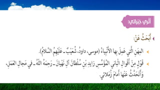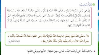 تتناول الوثيقة أهمية الممارسات الحديثة في تربية الأغنام والعلاقة بين الإنسان والحيوانات. تُبرز القيم مثل الصبر والصدق والأمانة المرتبطة برعاية الأغنام. تقدم الوثيقة أيضًا لمحات عن المهن المختلفة ودورها في تعزيز هذه القيم.